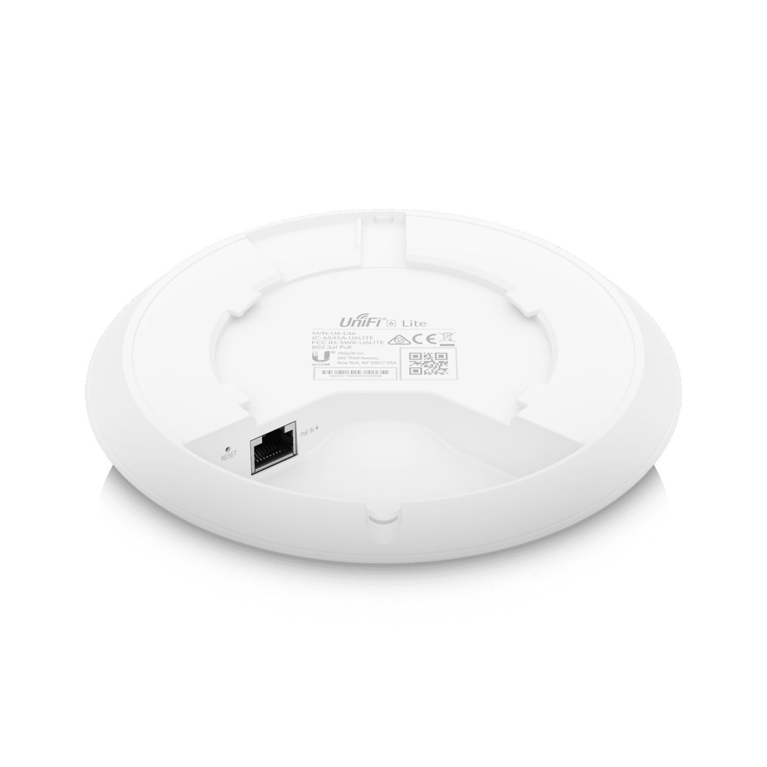 El Access Point U6-Lite es un punto de acceso 2x2 WiFi 6 que puede alcanzar una tasa de rendimiento total de hasta 1.5 Gbps con sus bandas de 5 GHz (MU-MIMO y OFDMA) y 2.4 GHz (MIMO). El U6-Lite puede montarse en el techo para ampliar la cobertura de la señal y admitir redes con gran densidad de dispositivos, o puede montarse en una pared para extender su señal en una dirección específica.