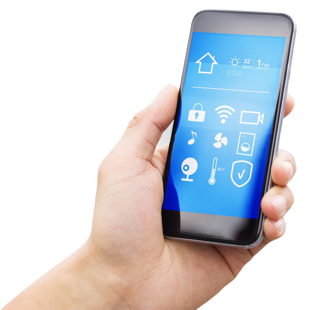 Control de acceso, alarmas, luces, cámaras, bocinas de audio, señal de wifi, etc. Todo el control y los accesos desde un teléfono inteligente y desde cualquier lugar